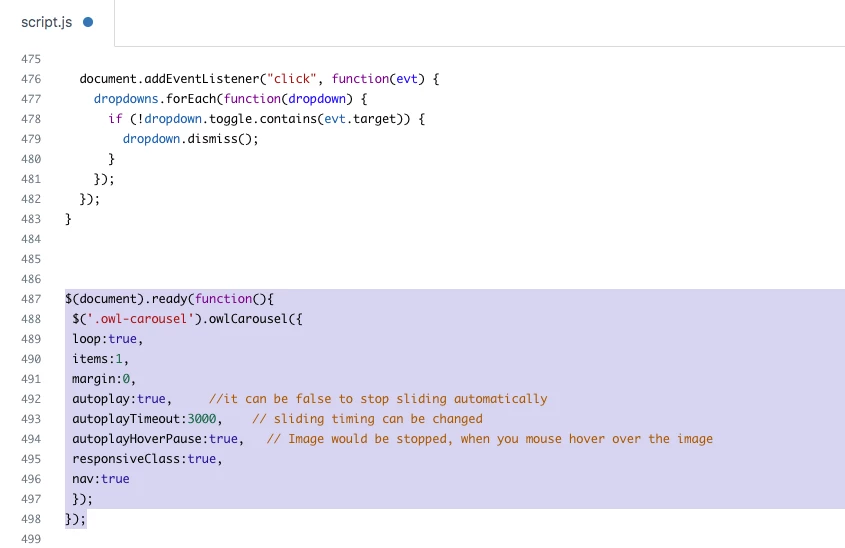 2). Add the given script code to your script.js file at the bottom area.