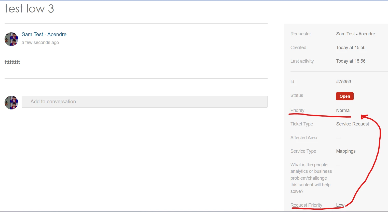 This will be confusing for the customer when they see their ticket in the portal with conflicting priorities before the rule has triggered.
