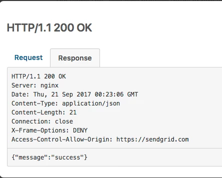 - You will see results, an HTTP 200 status for success (i.e. our SendGrid configuration is good)