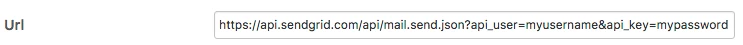 - Enter the URL (above with your SendGrid username and password) in URL field