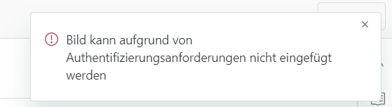 "Image cannot be inserted due to authentication requirements"