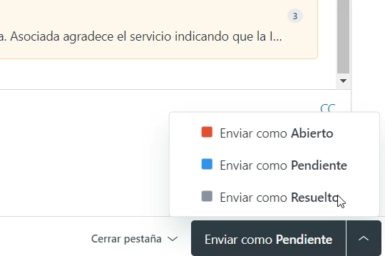 Estoy teniendo problemas con los botones de la plataforma de Zendesk Support, aparecen deshabilitados (no se puede hacer clic) para poder cambiar de estado, por ejemplo de pendiente a resuelto o abierto.