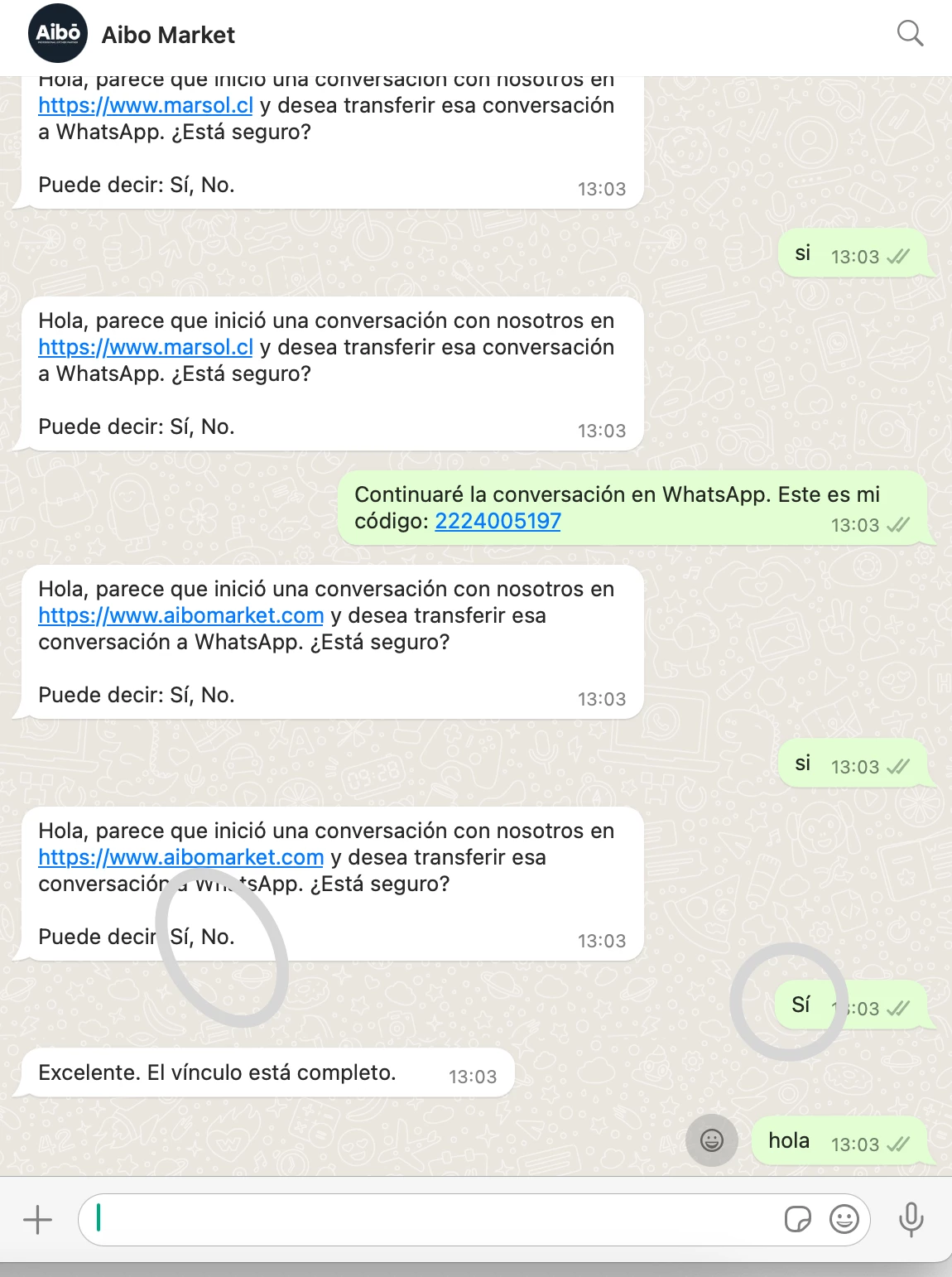 Hola! me gustaría solicitar que fuera posible cambiar el mensaje de transición desde webchat a whatsapp, dado que si el cliente no escribe de manera correcta la respuesta, entra en un loop eterno y causa problemas.