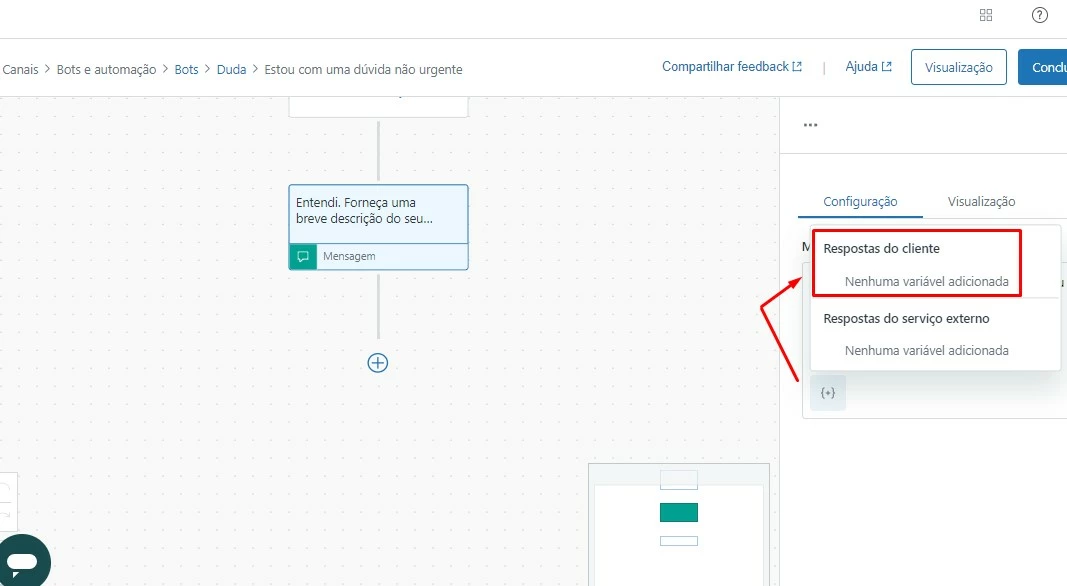 Gostaria de saber se realmente existe a possibilidade de adicionar variável para a resposta do cliente. Não consegui encontrar um artigo na Central de Ajuda que fale sobre esse botão.