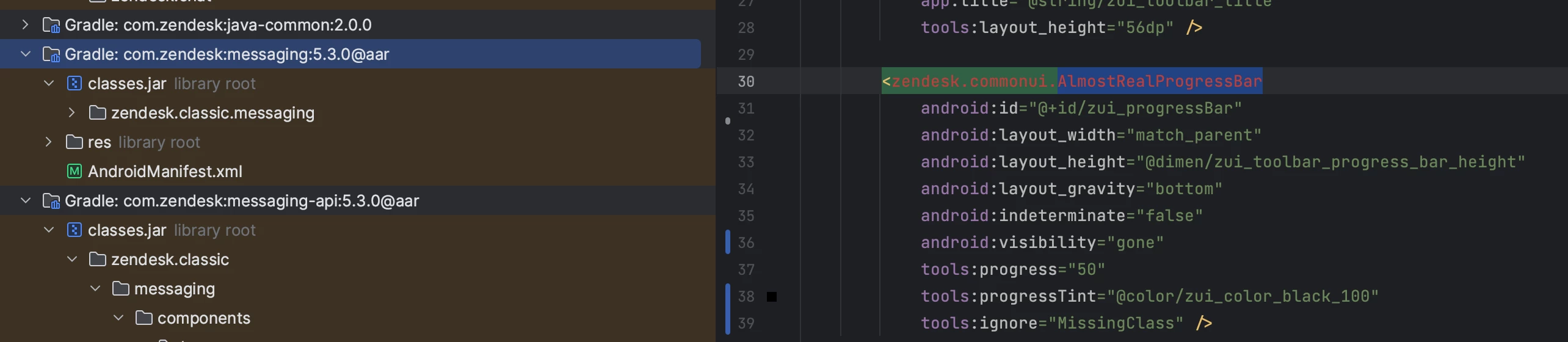 As you can see from the screenshot, for that library there's no package `zendesk.commonui` it's only `zendesk.classic.messaging`