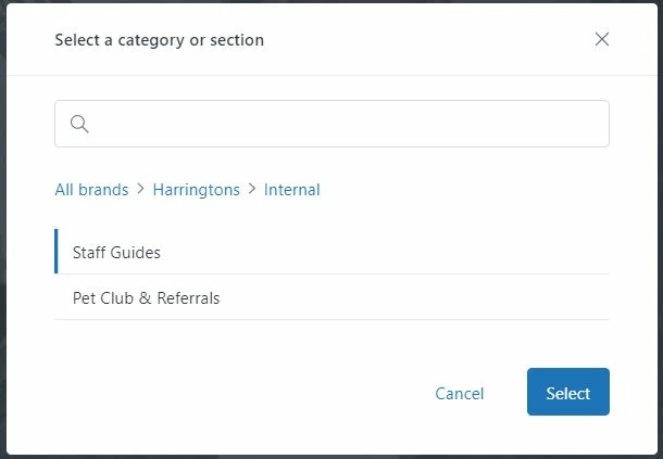 For instance, it would be great to drill down the filter to sections / categories as you see below so agents can look at a full list of the internal/staff articles we have set up in one go - without having to navigate outside of the ticket they're currently' working to get guidance.