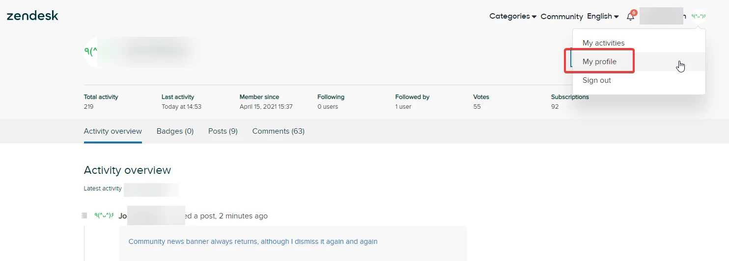 My profile and My activity in Zendesk support web site have always confused me.