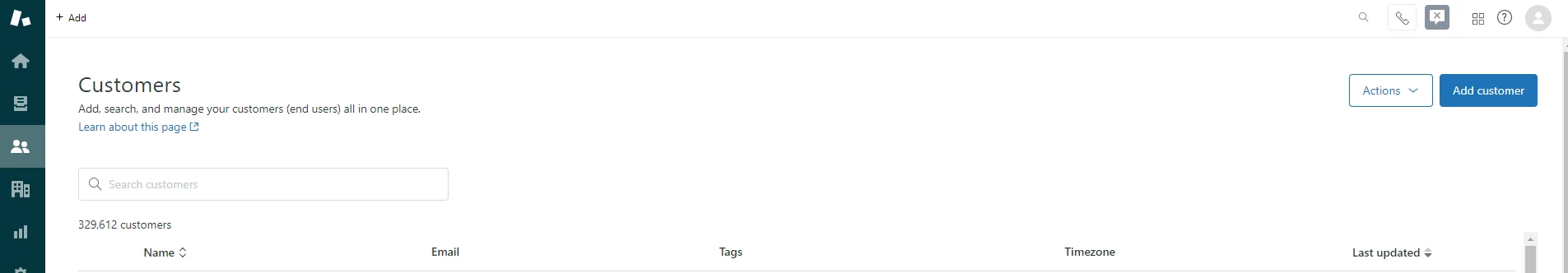 Customers tab: We need options to filter what is displayed. I need to see end-users names, phone number(s), email, tags, time zone and last updated. Below is a screenshot of what can be seen currently.
