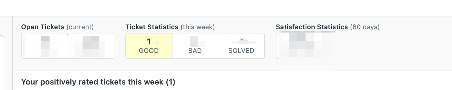 At the top of the user stats, you can see how many good/bad ticket satisfactions you had. If any chat tickets had a *chat* rated, they are included here, even though it explicitly says "Your positively rated tickets this week".