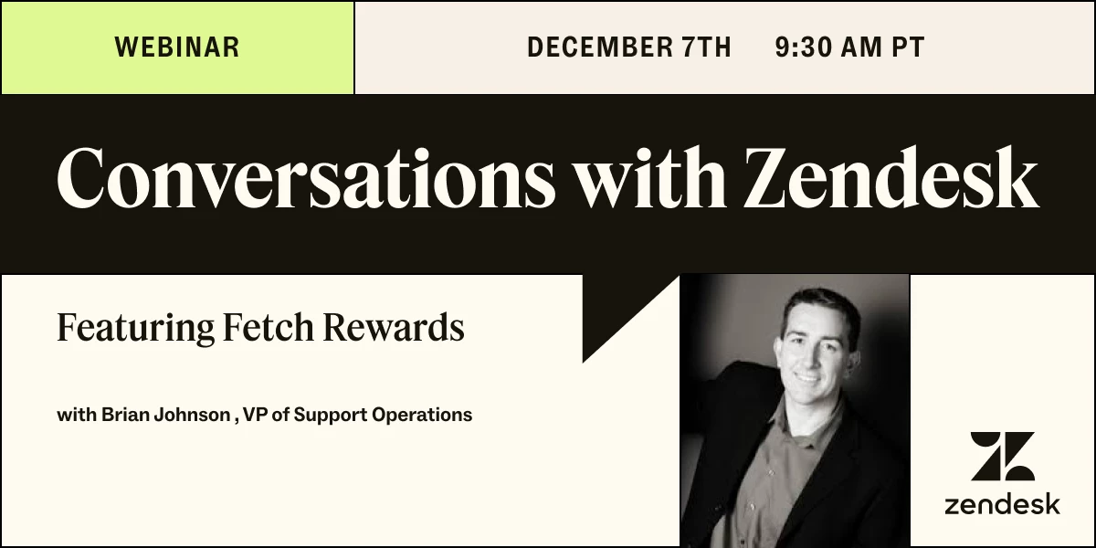 We are excited to announce our upcoming event, Conversations with Zendesk featuring Fetch, scheduled for Thursday, December 7th at 9:30 AM PT / 12:30 PM ET.