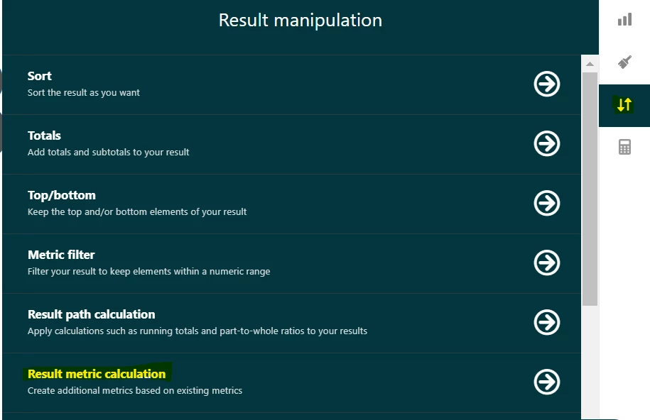 Step 4: From the right menu, click Result Manipulation > Result metric calculation