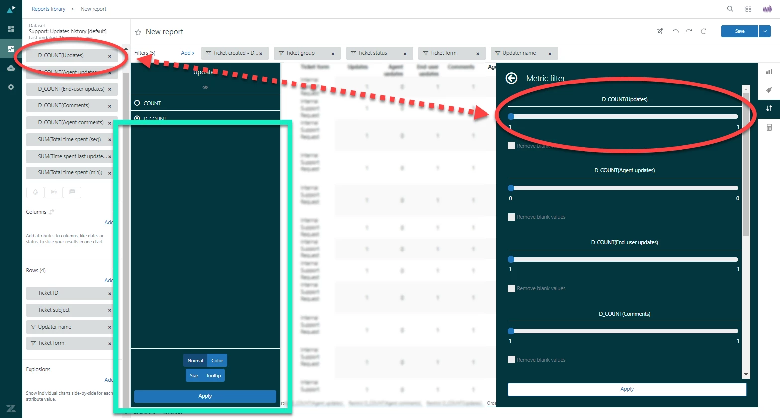 Currently, to filter based on the metric and keep the results in a numeric range in Explore, you need to use the result manipulation menu on the right hand nav. It would be helpful if you could access the filter settings from the actual metric when adding to the builder in the left hand nav (similar to adding attribute filters):