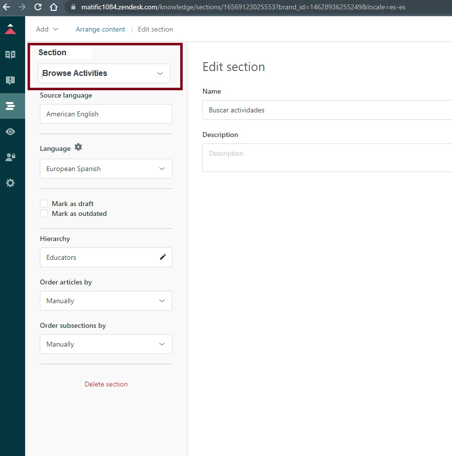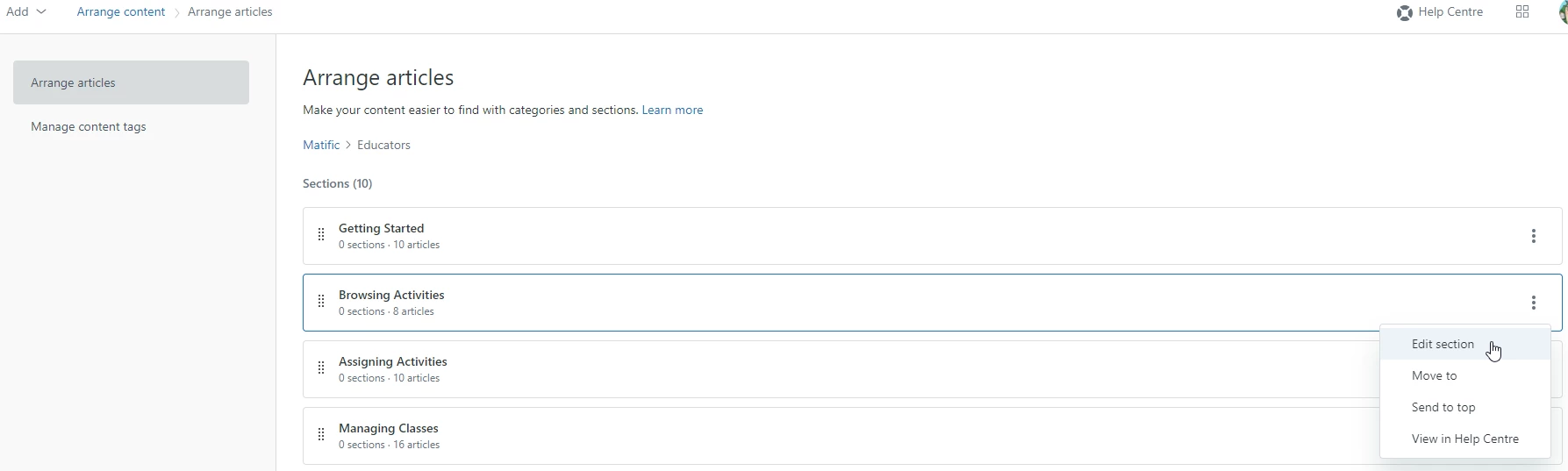 Feature Request: Section selection dropdown in Arrange content Edit section