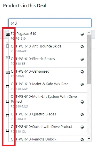 Our Sell Deals usually comprise of multiple product line items; base product and options. Being able to search on a key term and select all line items in one go would improve their user experience.