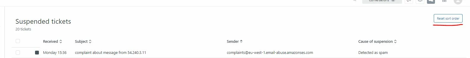 When I go to Suspended Tickets view, I do see "Reset sort order" button as normal: