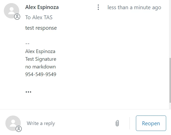 Now you can have two signatures, one for side conversations and one for public ticket responses, and still use the markdown commands for public ticket responses.