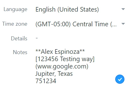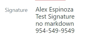 First, I inserted the signature information with the markdown commands into the "Notes" Section of the agent's profile.