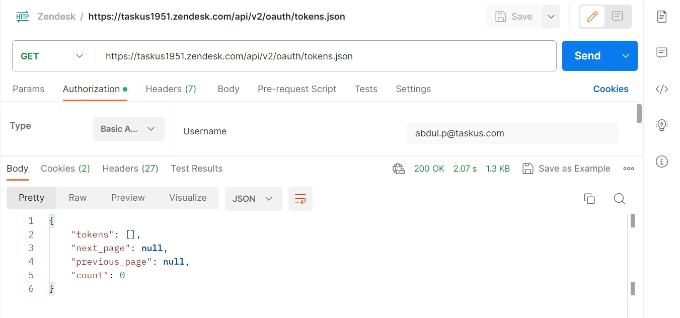 So, when I run this command in POSTMAN, It is showing Empty token..