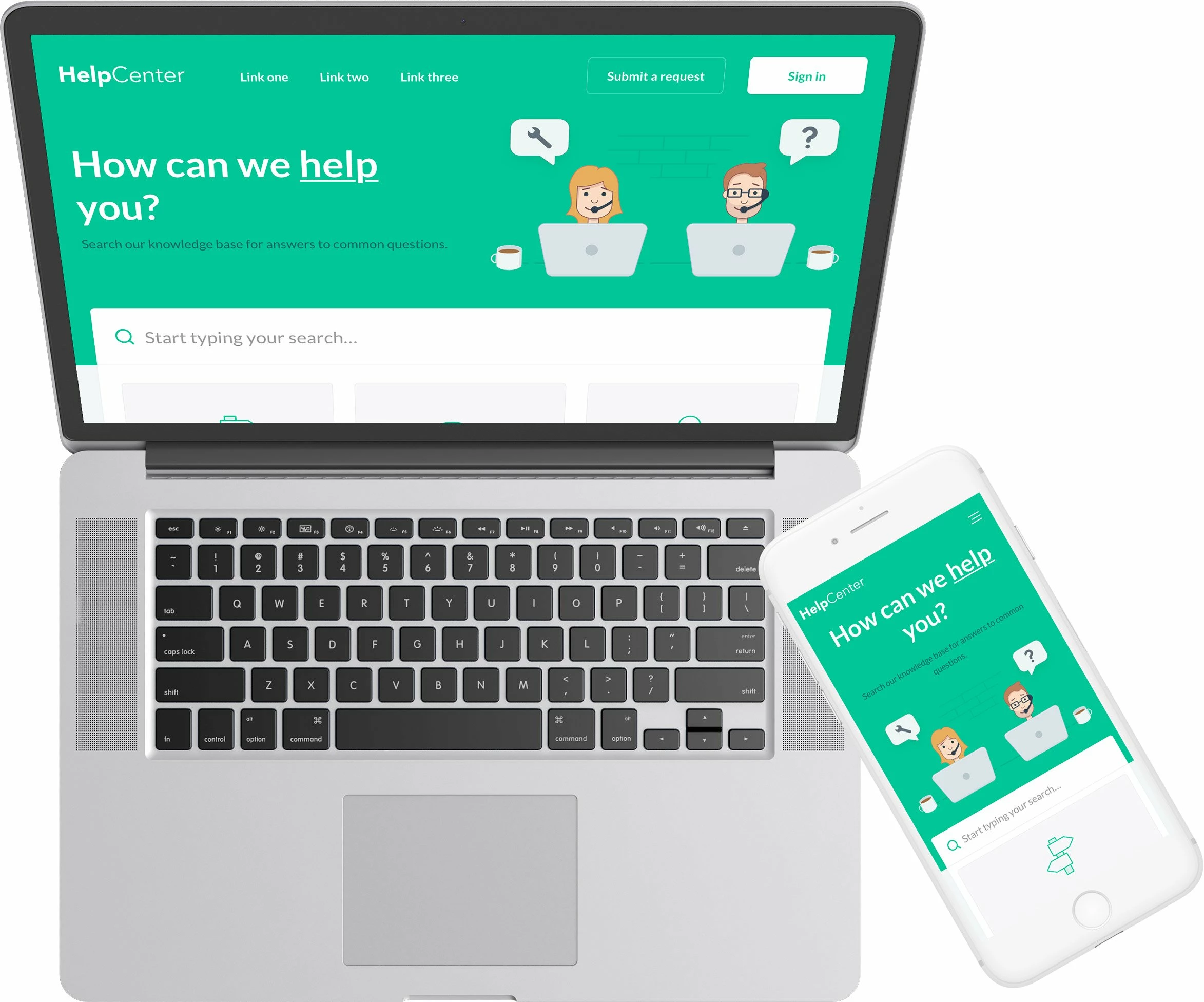 Hudson theme for Zendesk Guide is created for all kinds of devices and all major browsers. Your customers will be able to use your help center on any device — either on a large desktop or on a small smartphone. To ensure that the theme is cross-browser and cross-device compatible, it was put through extensive testing.