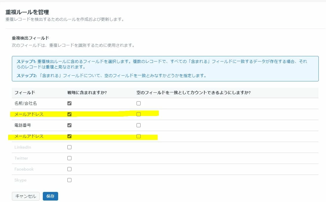 In the Japanese environment, there are two "email addresses" in the duplicate check box.