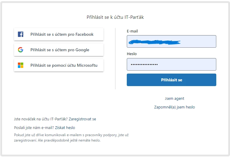 - Jste nováček na účtu IT-parťák? Zaregistrovat se