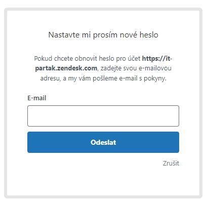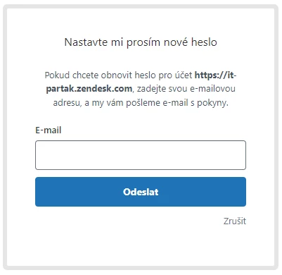 - 1st picture (receive a new password via email) - Pokud chcete obnovit heslo pro účet https://it-partak.zendesk.com, zadejte svou e-mailovou adresu, a my vám pošleme e-mail s pokyny.