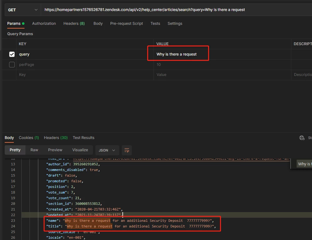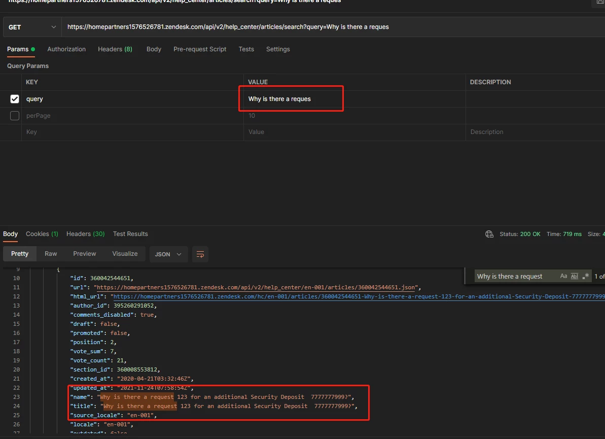 When I tried to use the Search articles API service, I found that the Seearch interface could not return the correct article information based on the keyword