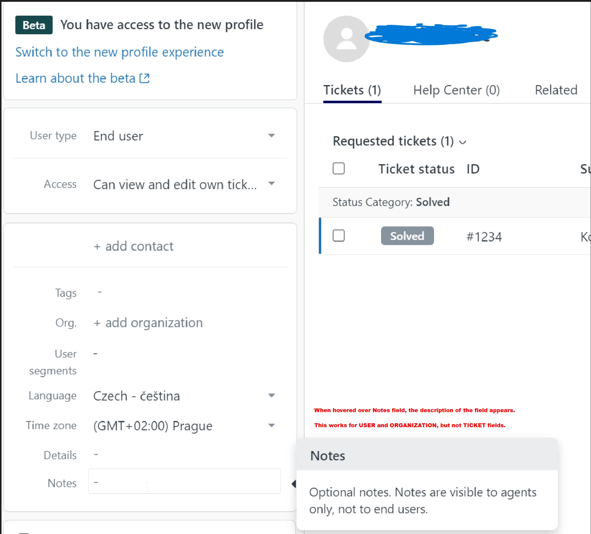 Currently, this works for ORGANIZATION and USER fields, but not for the ticket fields, which is a pity, because we have to explain the field meaning to our agents and every time they forget, they have to find our documentation.