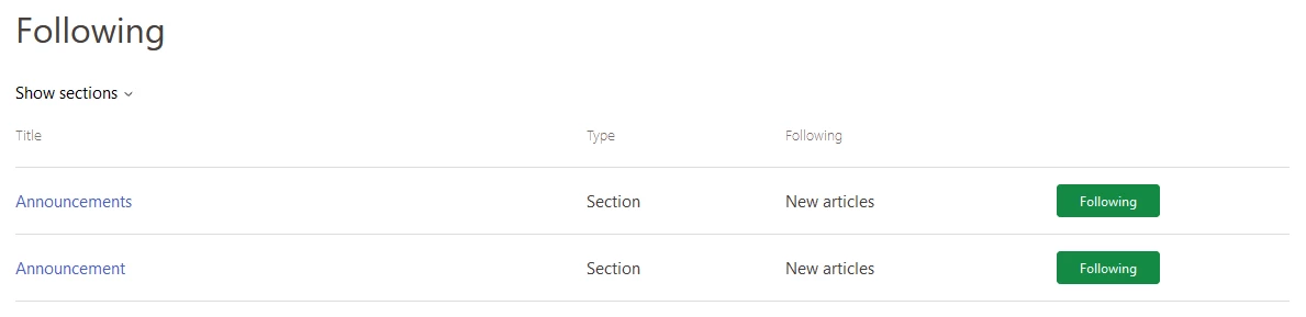 We are a software company, which makes support for several product families. For each product family we have a category for articles. In each category we have common sections like "Announcements". If a user follows several "Announcement" sections, it is not possible to differ them in the list.
