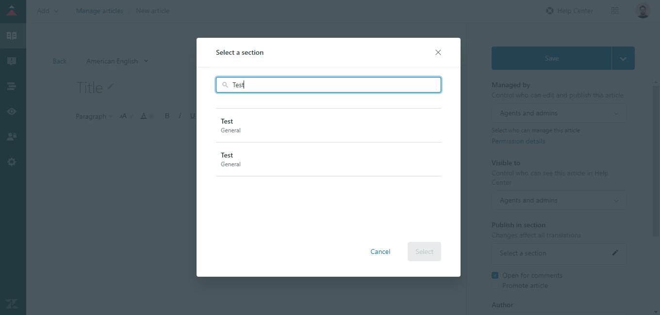 Alternatively, the pop-up would only show categories and sections published under the same language the new article is being created in.