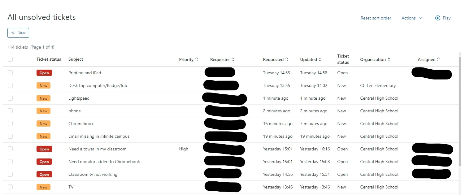 When on the website on my desktop computer, I can sort the tickets by organization as you can see in the following screenshot. However we cannot do this on the app which is what we need. This would be especially helpful when we go to building to troubleshoot tickets so that we can organize by the building we are at to focus on those tickets only.