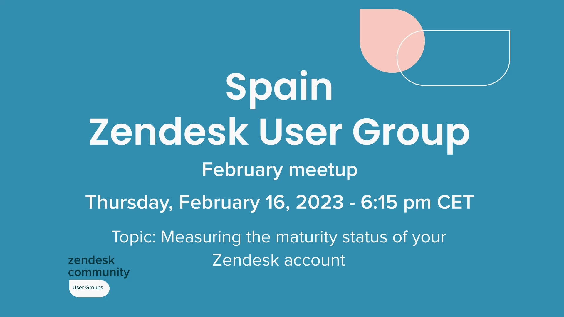 The Spain User Group's February meeting is coming up on February 16. This month's discussion topic is how to measure the maturity status of your Zendesk account. The group also plans to cover some of the recent news that Zendesk has published.