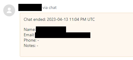 Screenshot from the ticket confirming the chat has ended.
