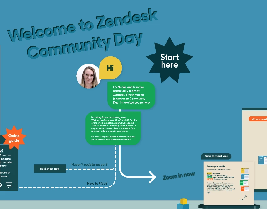 Zendesk Community Day is coming up, and we've prepared a cool interactive experience for you. Head on over to the Community Day Virtual Lobby to post your nametag, check out who else is attending, and participate in the fun! This lobby will be open throughout the event.