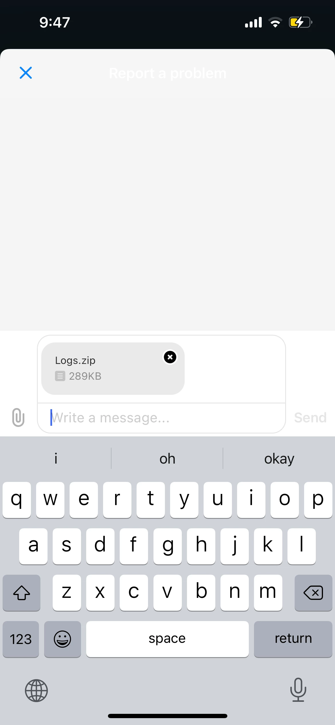 I'm having a bit of trouble changing the color of the text in the Zendesk Support navigation bar on iOS SDK, latest version. After some digging, I found that the view controller from which we can initiate a chat with Support is called RequestContainerController which is by default, modally presented. The title at the top says "Report a problem" on the iOS SDK, however on dark mode, the text is white and the background is white, as so:
