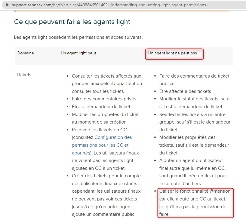 Il est dommage qu'un agent léger ne puisse pas interpeller un autre agent ou agent léger dans les notes internes en utilisant le @.