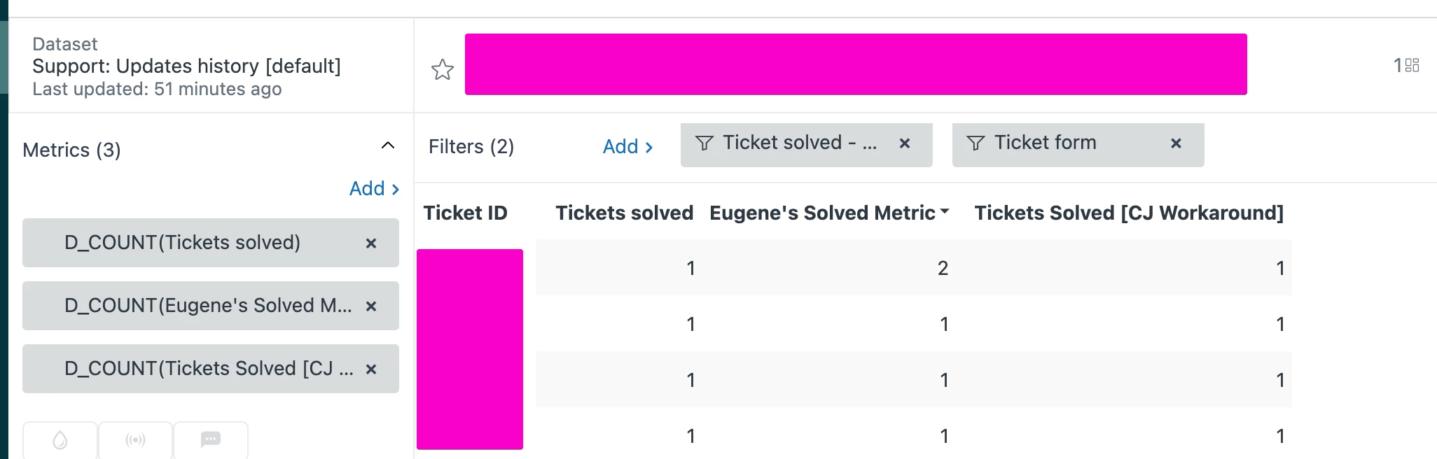 Tickets solved metric discrepancy in Updates history Explore dataset | Community