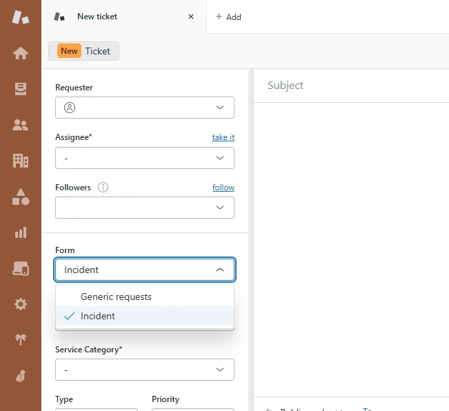 As a workaround, agents sometimes use the end-user interface to access the correct forms or manually adjust fields after creating the ticket. Both approaches are inefficient and increase the risk of human error.