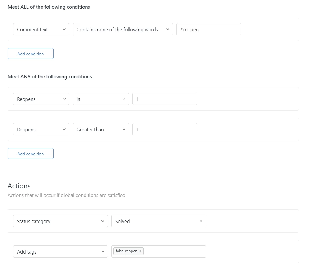 The ultimate way to solve this, is where the customer actually goes to the helpcenter and tags on ' Problem is solved ' and makes a reply. But we all know that this will not happen since many customers will reply on an email, which works way quicker.
