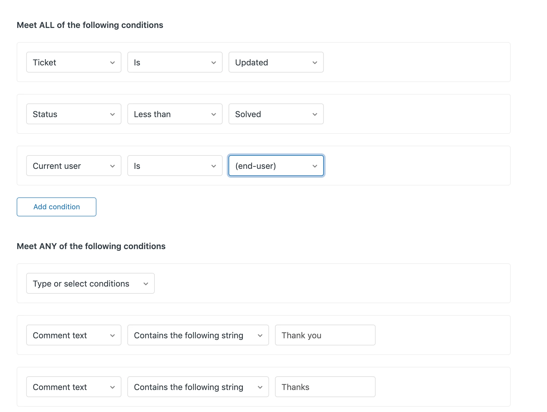 Some kind of detecting way for a ticket to see if another question has been asked including ' thank you '