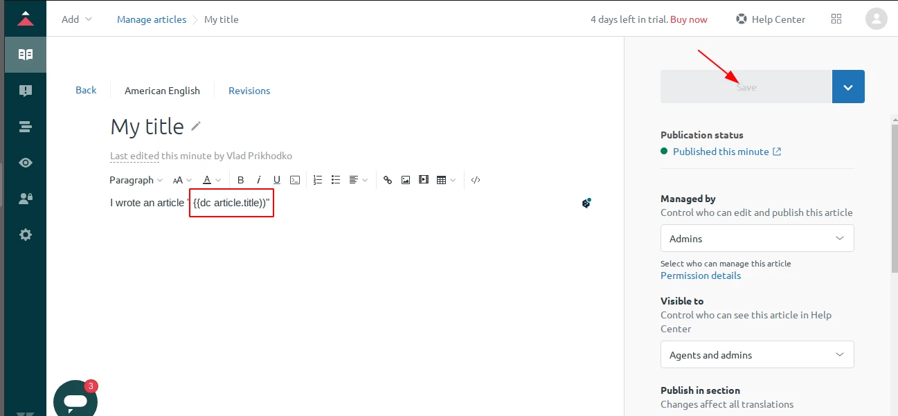 Can I use placeholders in Help Center articles? Example: "My company is a {{help_center.name))" And can I use my custom placeholders?