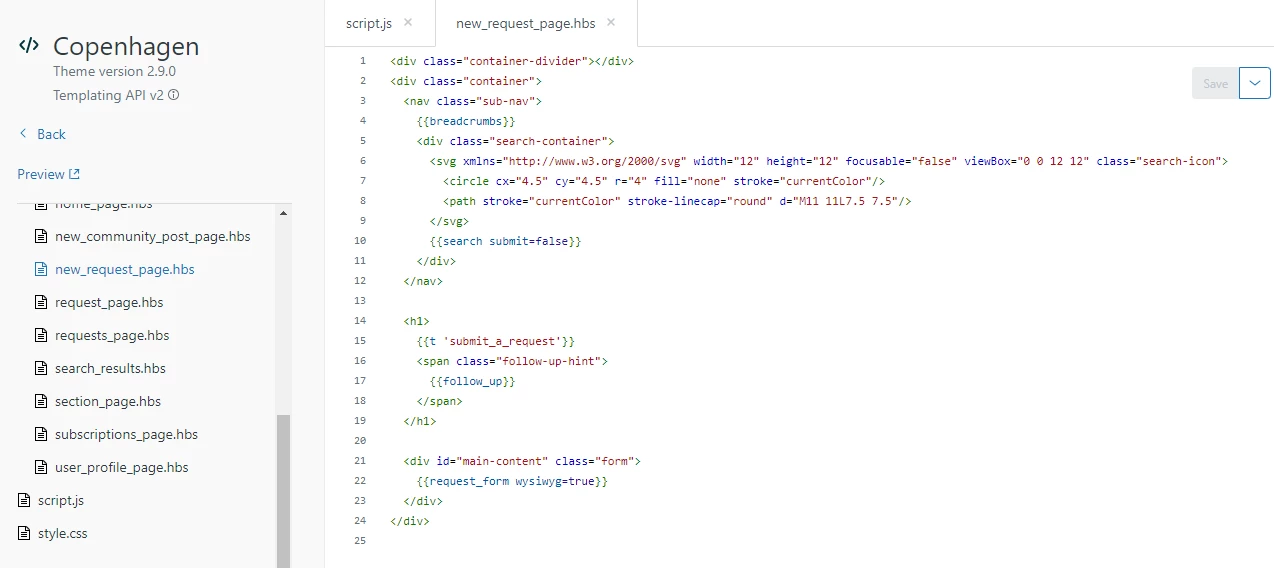 I looked at the HTML for our Help Center and found there is a template called "New Request Page" with a reference to "{{request_form}}" but I'm not sure how to access that or edit it.