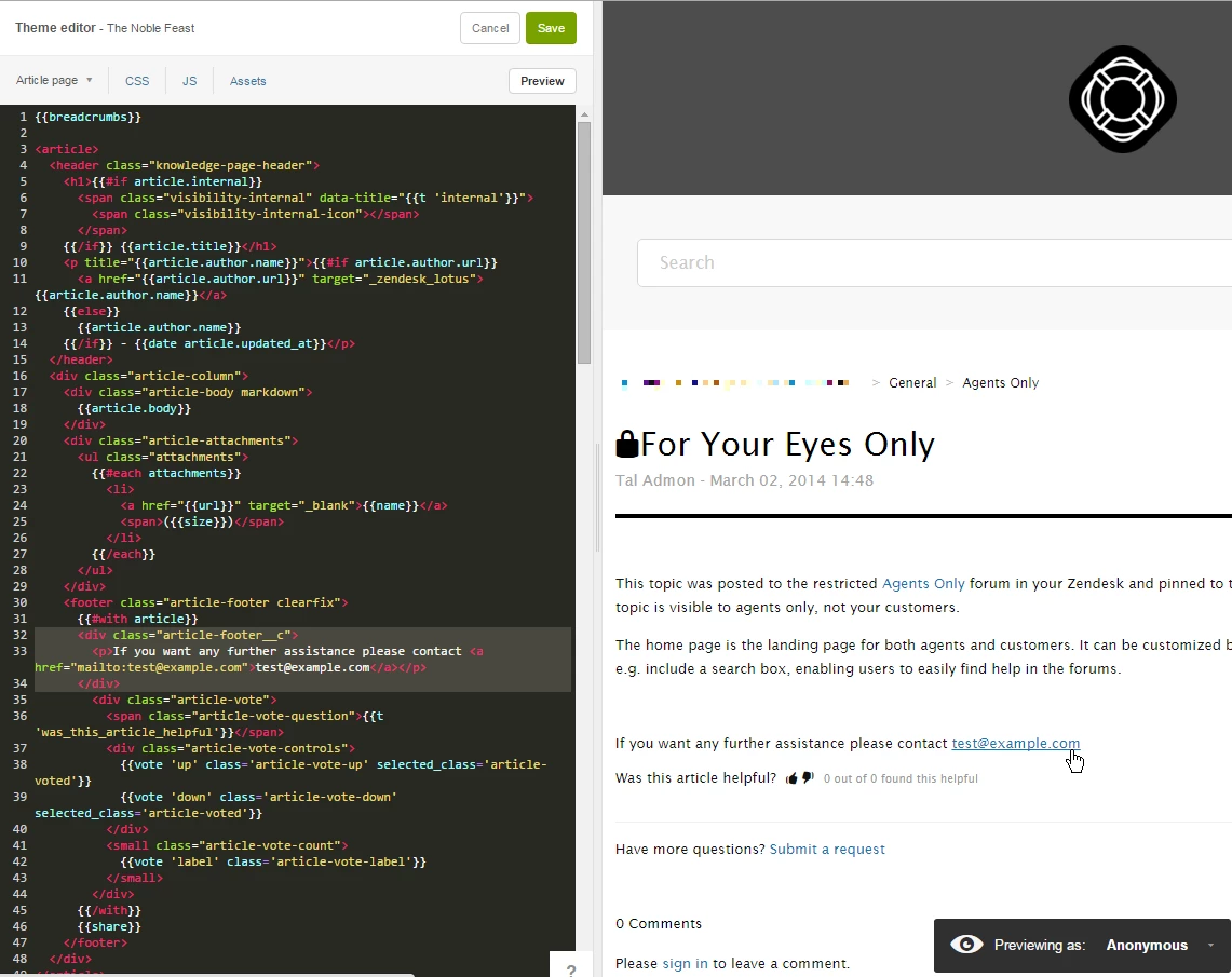 Is it possible to add (or if there is already one, how can you edit) a footer in every Help Centre article?