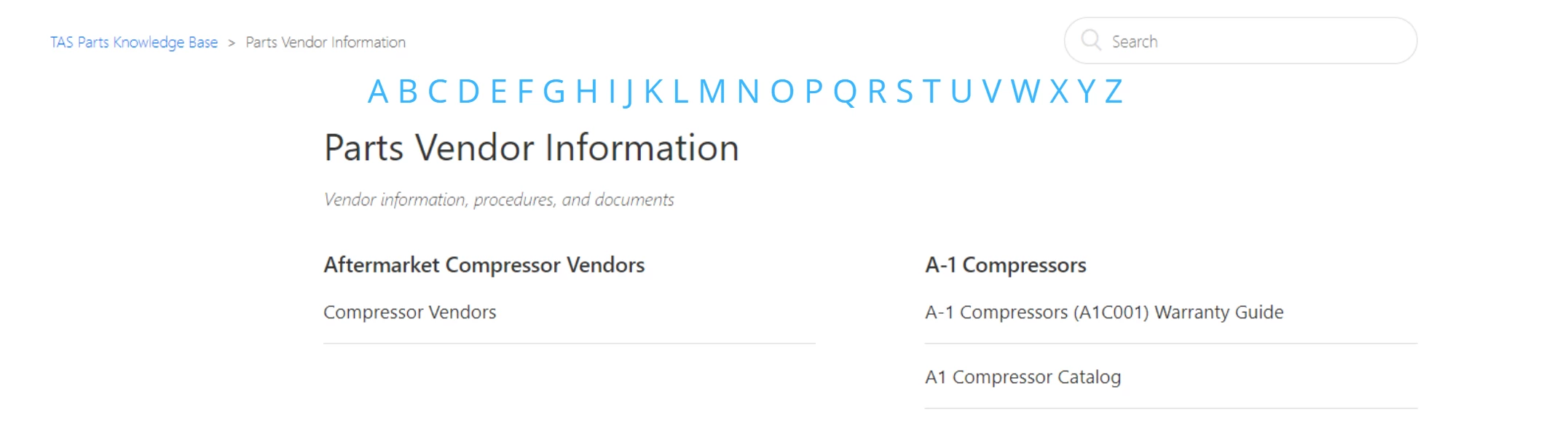 example image below; clicking on Z will take me to the bottom of the page to the sections that start with "z"