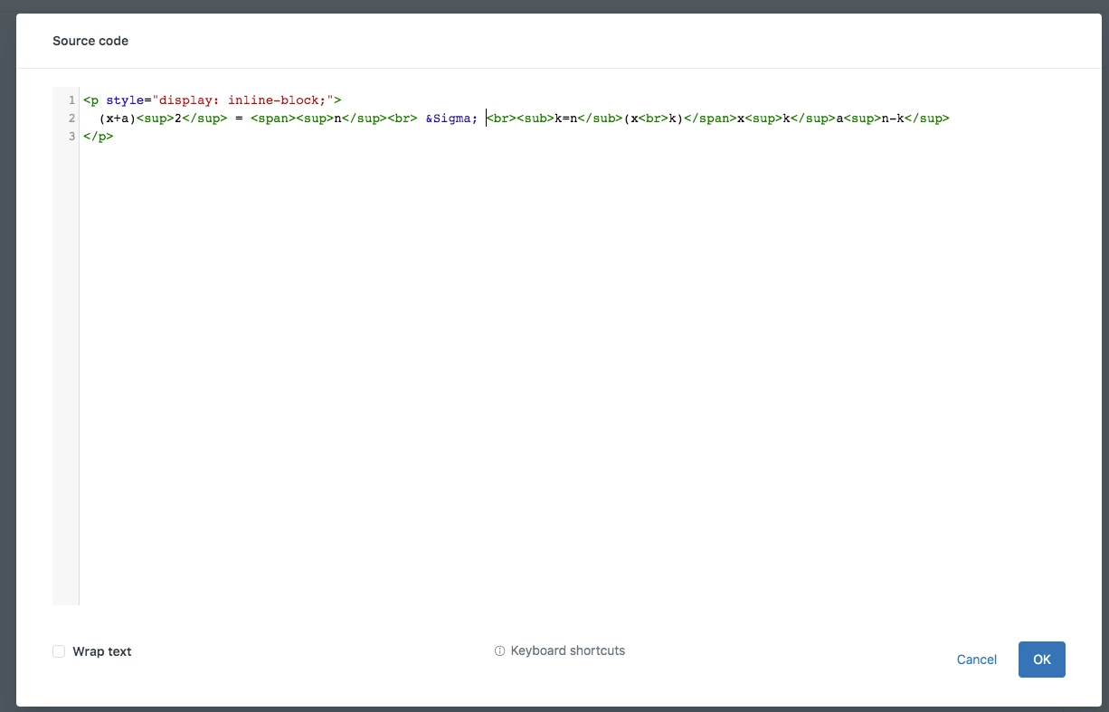 Does anyone know of a way to add a mathematical equation to an article without just inserting an image? See an example of what I'm talking about below.