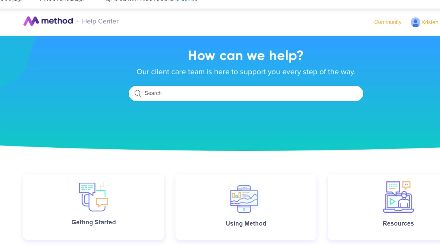 I'd like to be able to add text above the search bar with the Copenhagen Theme but I'm having a hard time figuring this out. I resorted to adding the headline "How Can We Help? Our client care team is here to support you every step of the way" in the image for now but I'd like to have actual text via HTML coding.