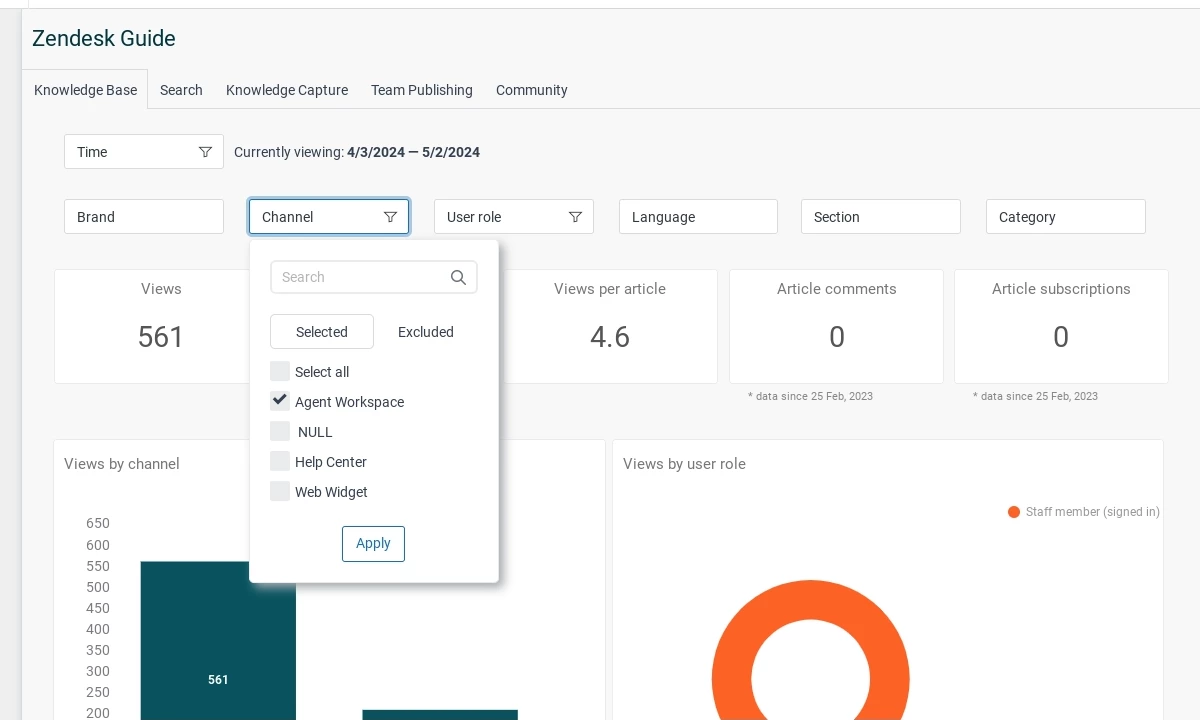 I'm trying to capture data when a signed-in Zendesk (ZD) user views a specific help center article within ZD Guide.