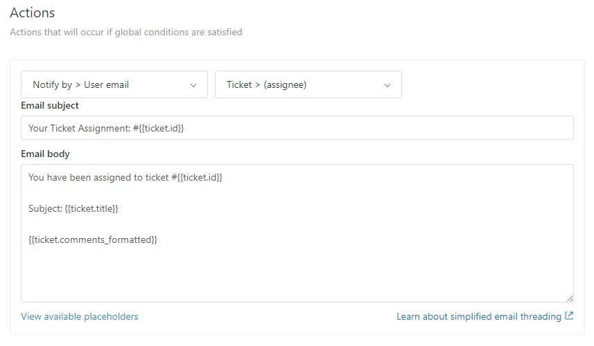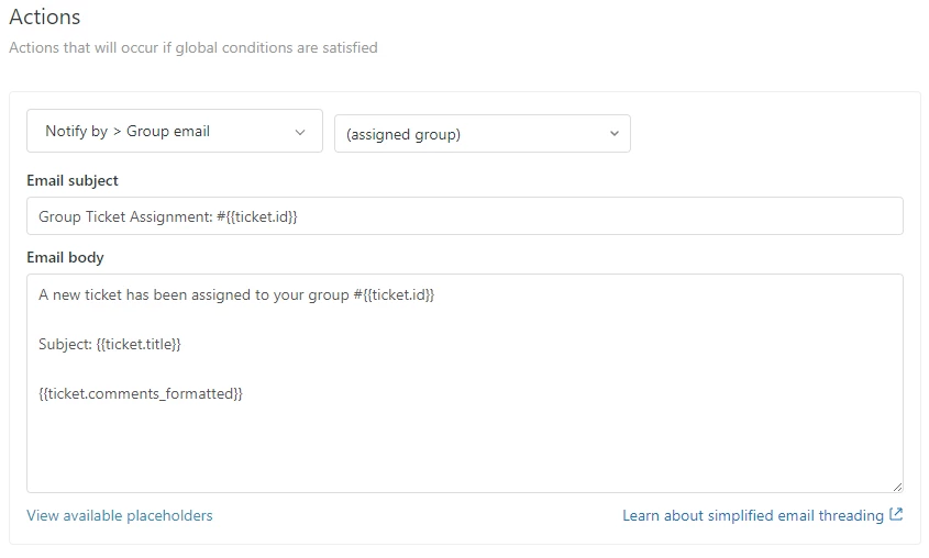 Both triggers for GROUP and AGENT ticket assignment notifications are working. But how do we adjust the AGENT notification so it doesn't send an email to the whole group? Can we have a trigger that One option we could do is have a separate trigger to email each individual agent, but this will take more time and maintenance to setup.