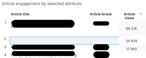 I'm not sure what would be causing this, but it might be helpful in troubleshooting if you added the "Article URL" attribute to the report so that shows up as a column.
