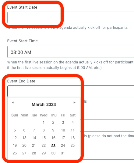 I'm using a form in my help center with 2 date fields - a start date and an end date. As is, end users can pick any dates they like in these fields. Can I restrict their choices to ensure the Event End Date is after the Event Start Date to prevent errors? Can I require the Event Start Date be at least x days after today?